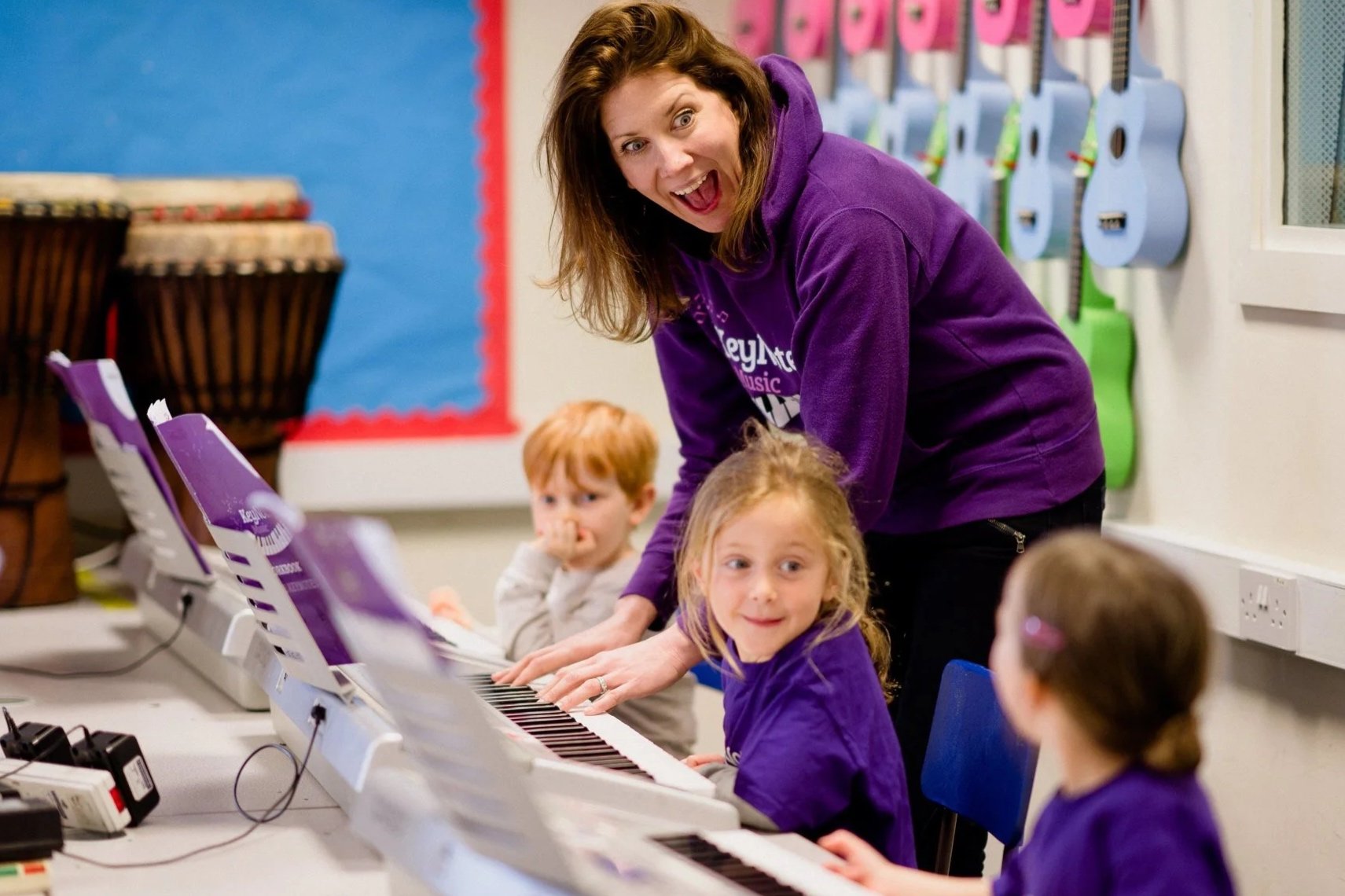 Students should have access to a piano or full-size keyboard at home. We’re happy to recommend keyboards and pianos by age and budget.